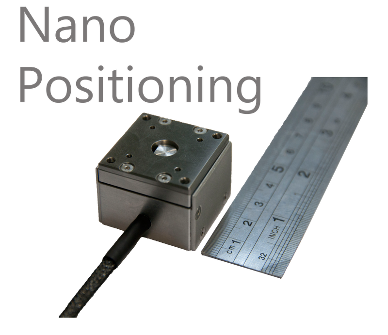 Piezo stage. Fully independent X, Y, Z axes. No crosstalk. Hi stifness. Built in optical sensors with absolute callibration. |